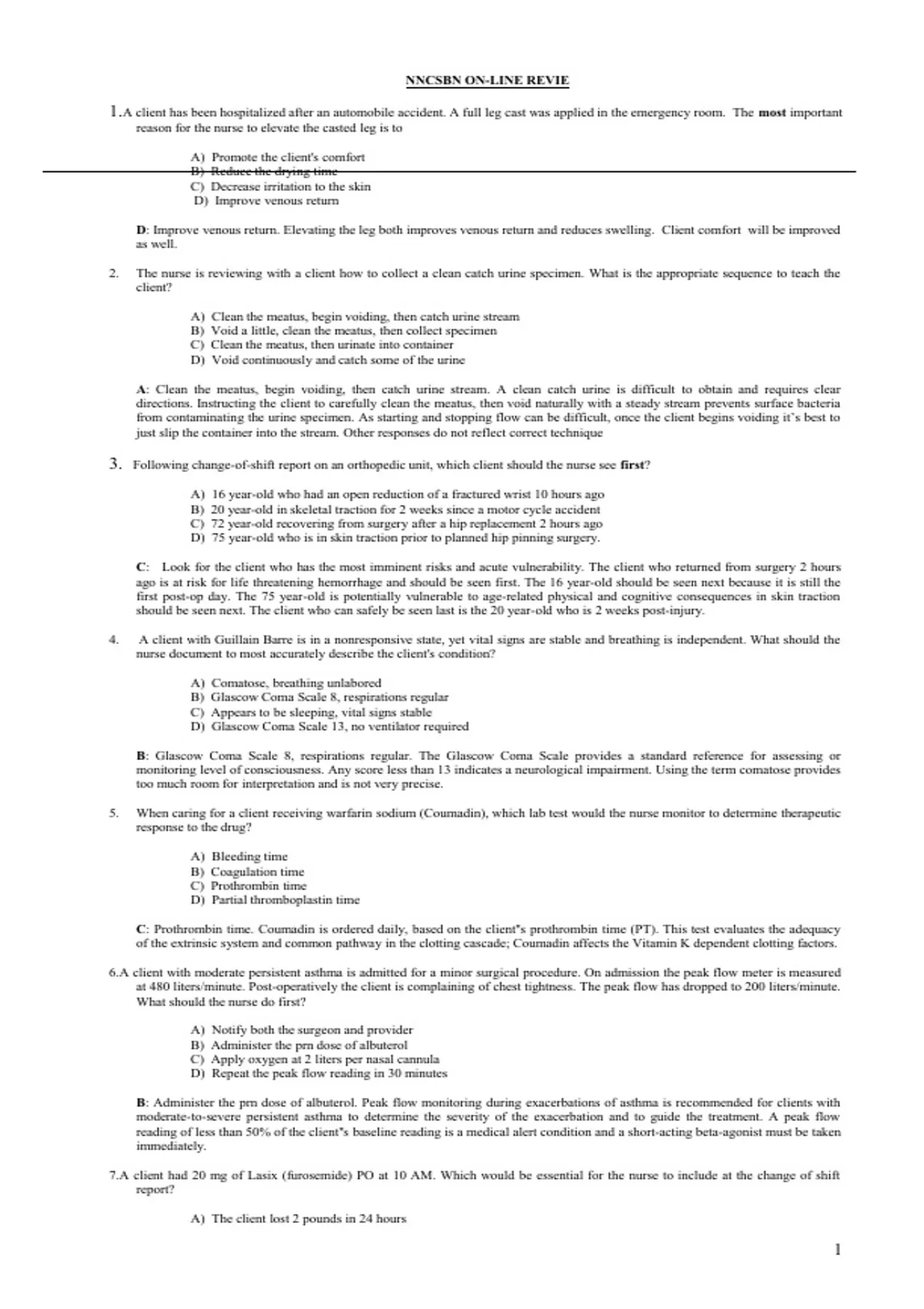 5. When caring for a client receiving warfarin sodium (Coumadin), which lab test would the nurse monitor to determine therapeutic