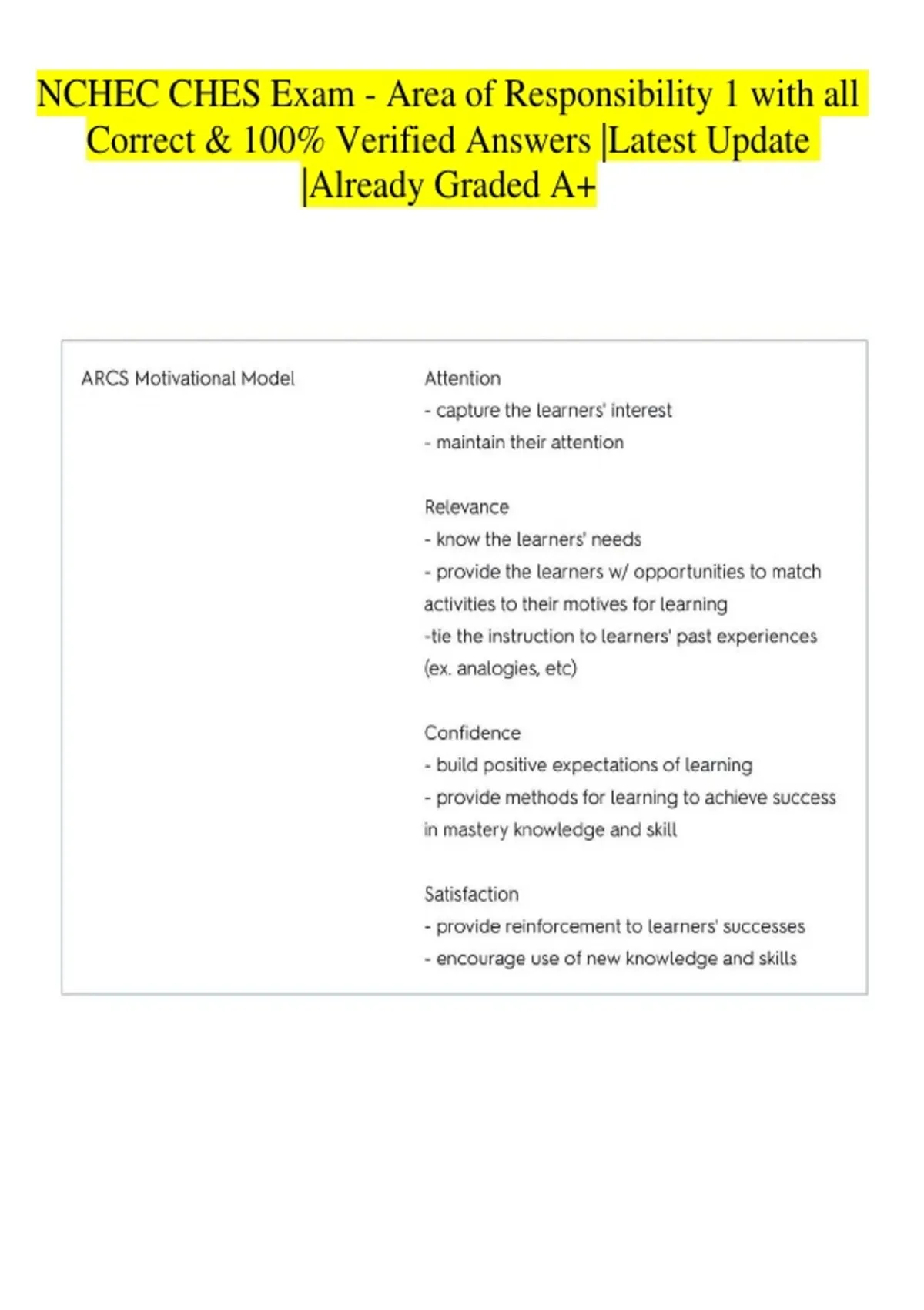 NCHEC CHES Exam - Area of Responsibility 1 with all Correct & 100% Verified Answers |Latest Update |Already Graded A+