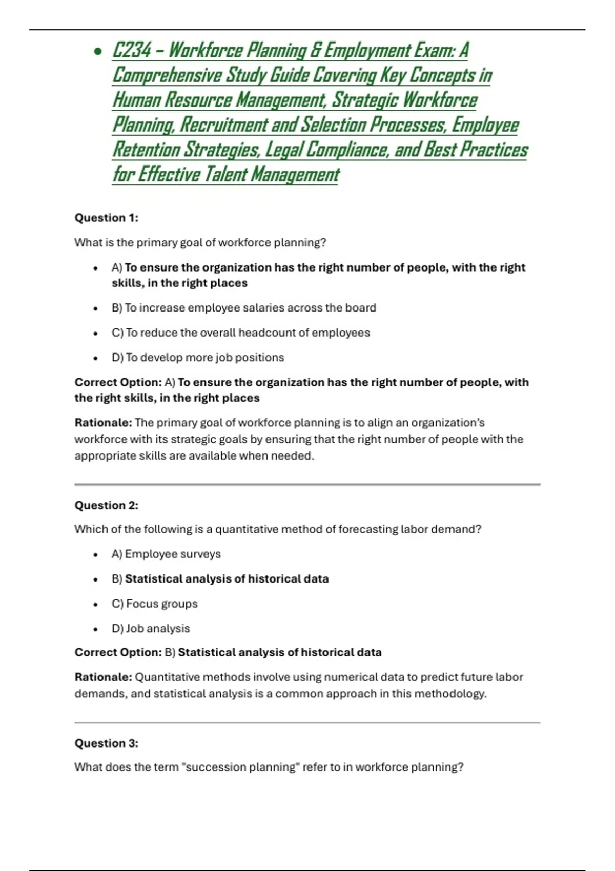 Rationale: The primary goal of workforce planning is to align an organization’s