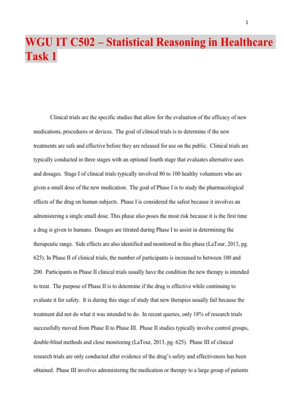 double-blind methods and close monitoring (LaTour, 2013, pg. 625). Phase III of clinical