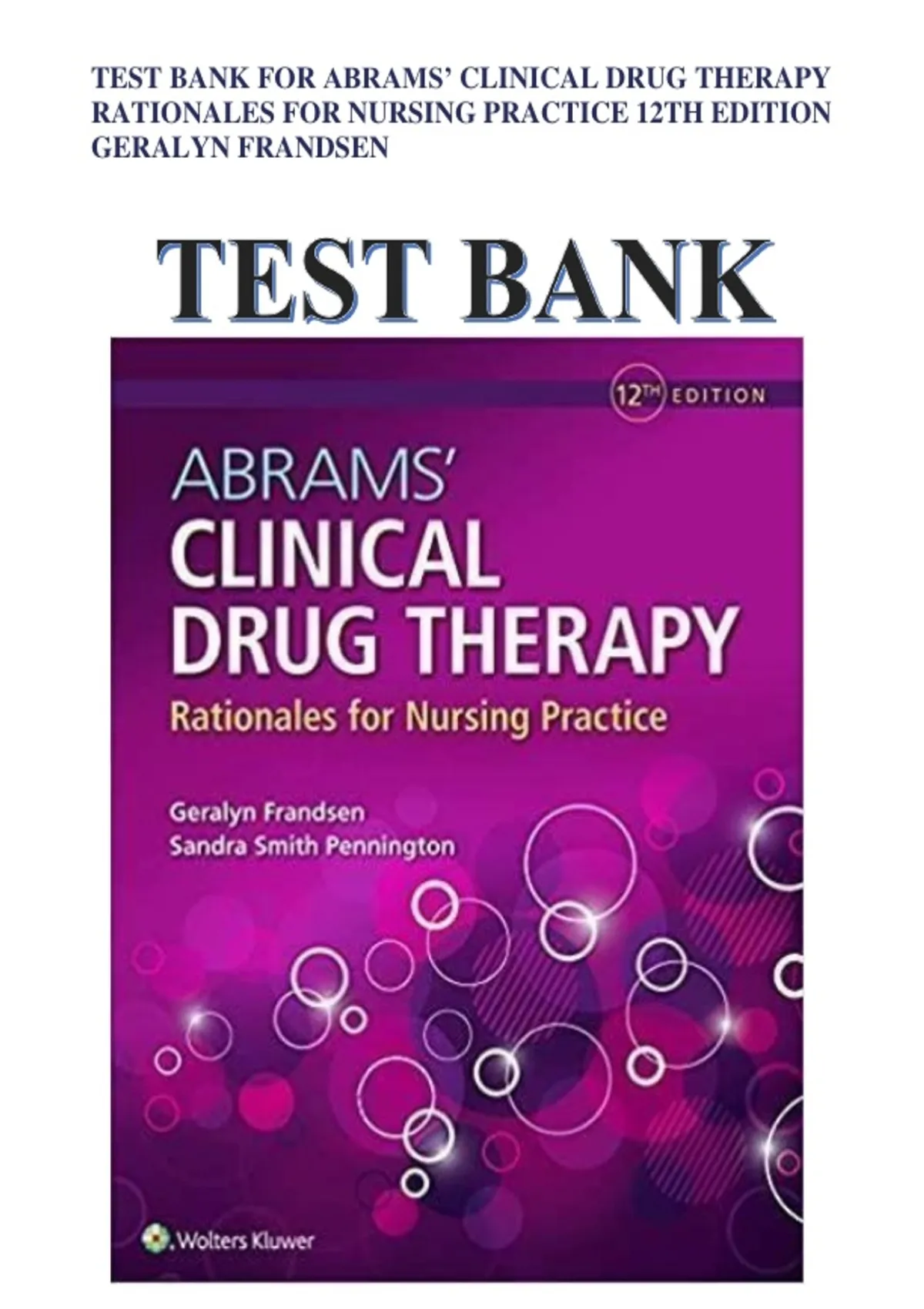TEST BANK FOR ABRAMS’ CLINICAL DRUG THERAPY RATIONALES FOR NURSING PRACTICE 12TH EDITION GERALYN FRANDSEN