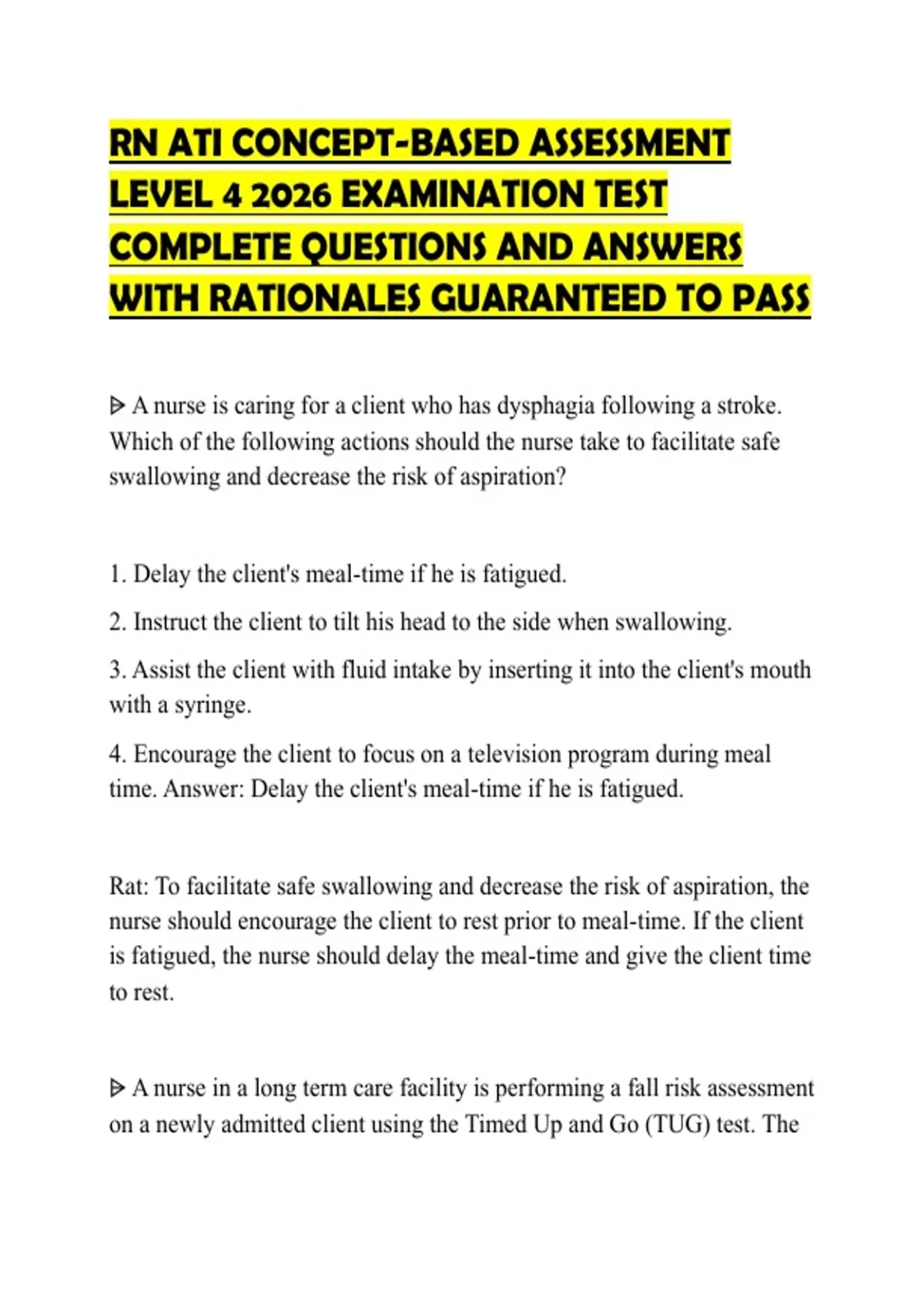 RN ATI CONCEPT-BASED ASSESSMENT LEVEL 4 2026 EXAMINATION TEST COMPLETE QUESTIONS AND ANSWERS WITH RATIONALES GUARANTEED TO PASS