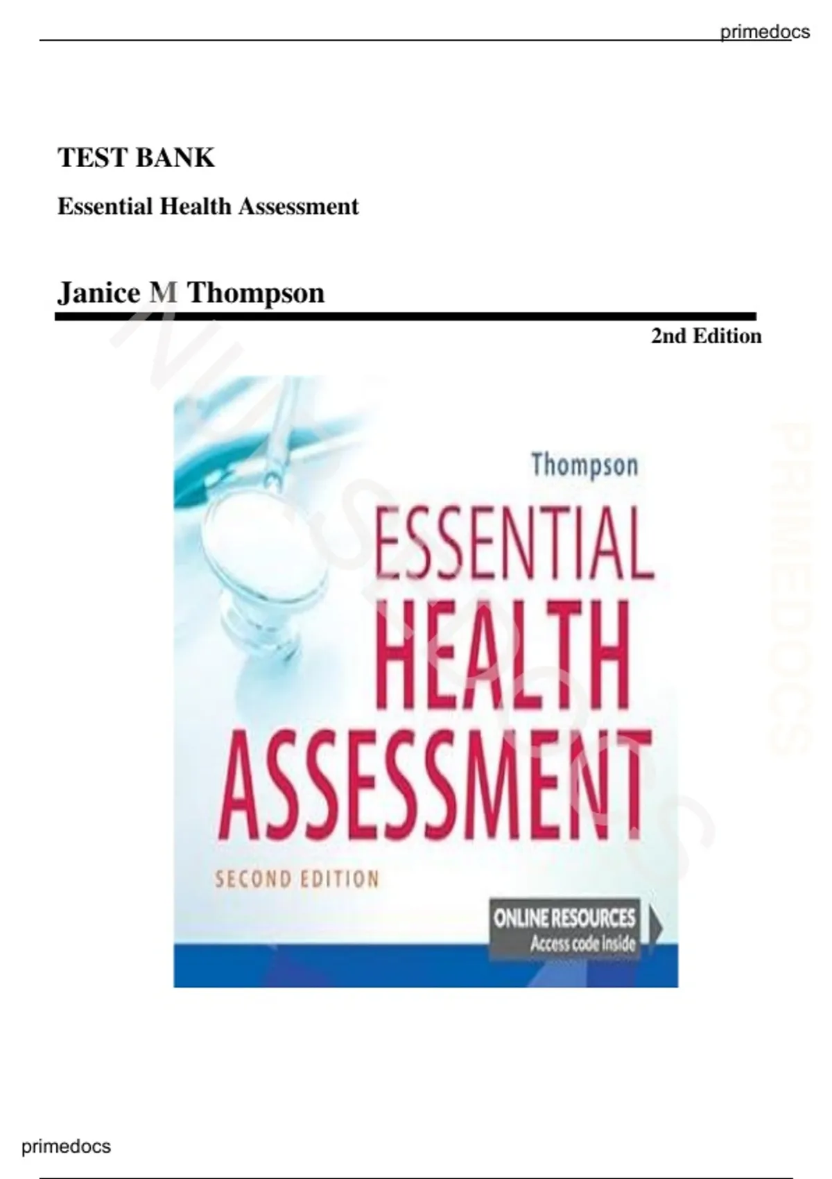 , Test Bank - Essential Health Assessment, 2nd edition (Thompson, primedocs