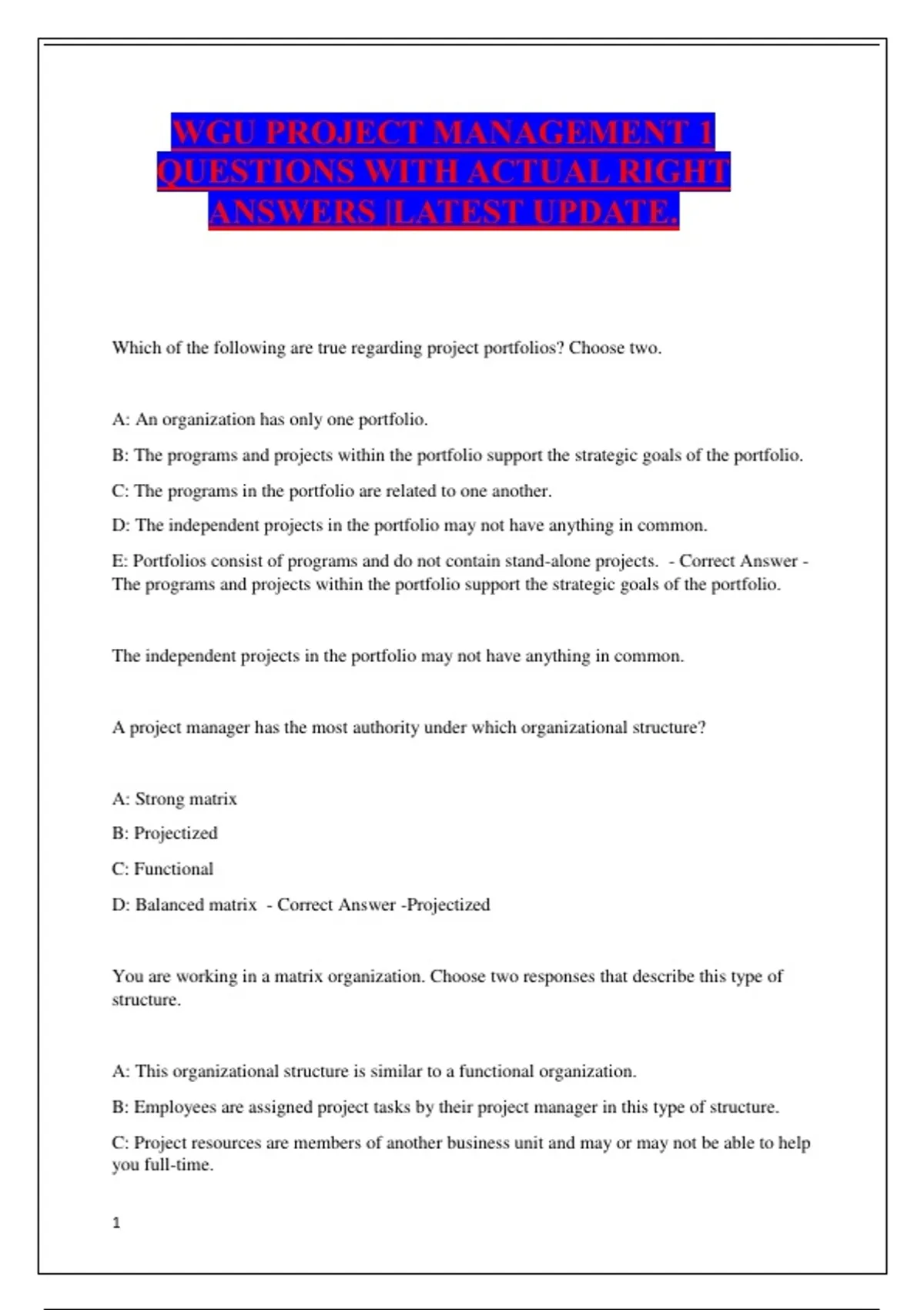 E: Project managers have the majority of power in this type of structure. - Correct Answer -
