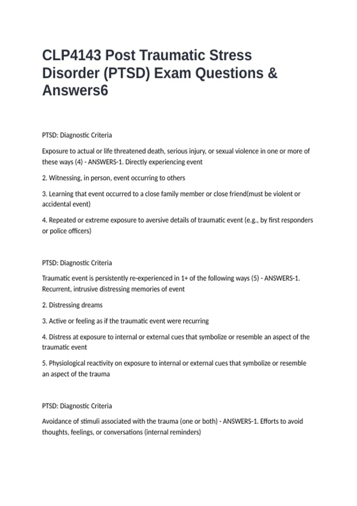 Traumatic event is persistently re-experienced in 1+ of the following ways (5) - ANSWERS-1.