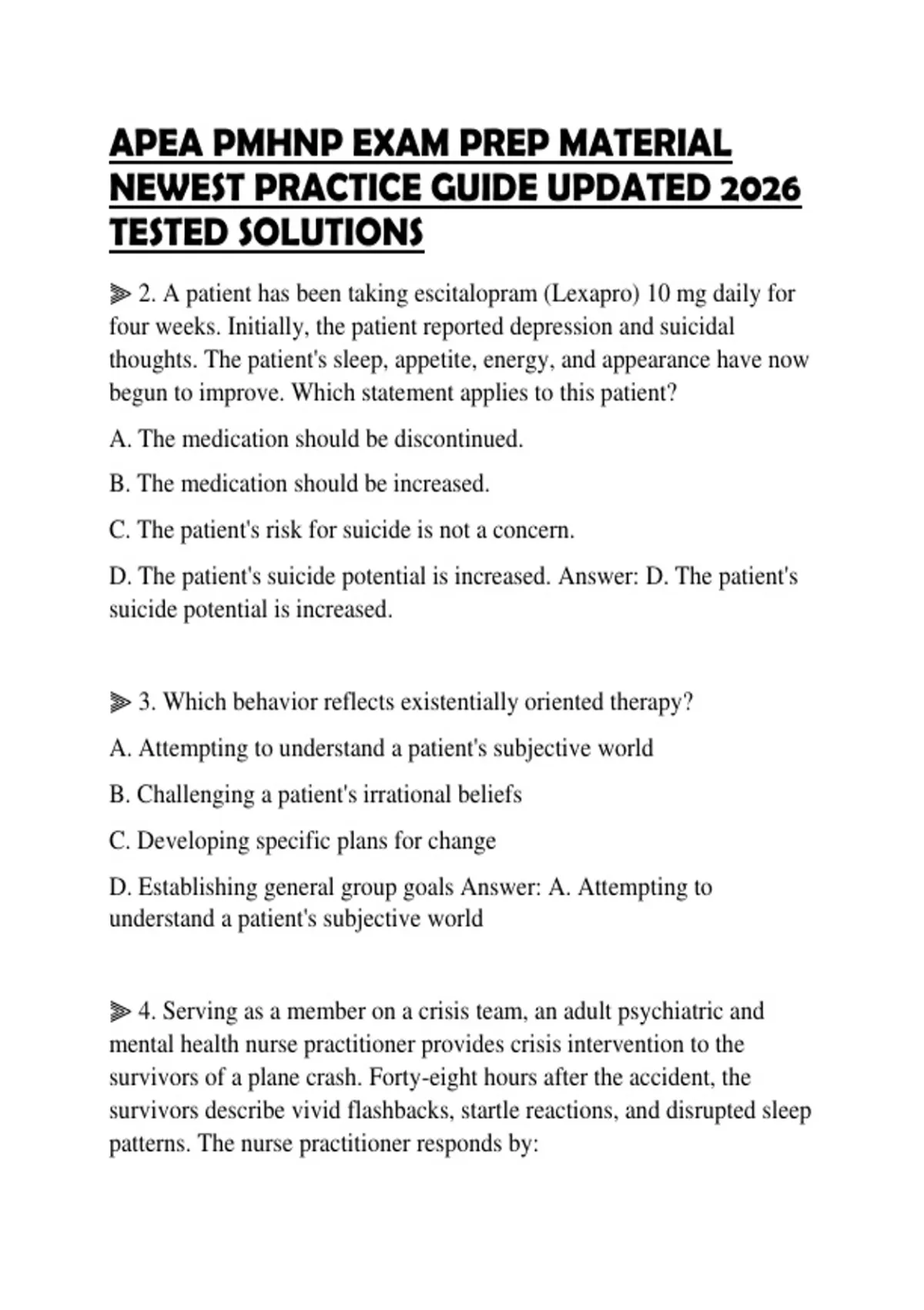 APEA PMHNP EXAM PREP MATERIAL NEWEST PRACTICE GUIDE UPDATED 2026 TESTED SOLUTIONS