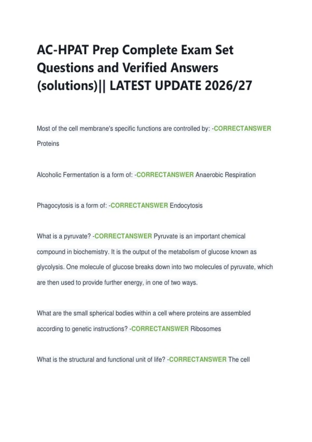 AC-HPAT Prep Complete Exam Set Questions and Verified Answers (solutions)|| LATEST UPDATE 2026/27