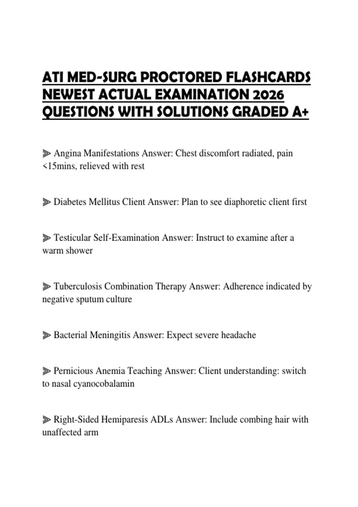 ATI MED-SURG PROCTORED FLASHCARDS NEWEST ACTUAL EXAMINATION 2026 QUESTIONS WITH SOLUTIONS GRADED A+