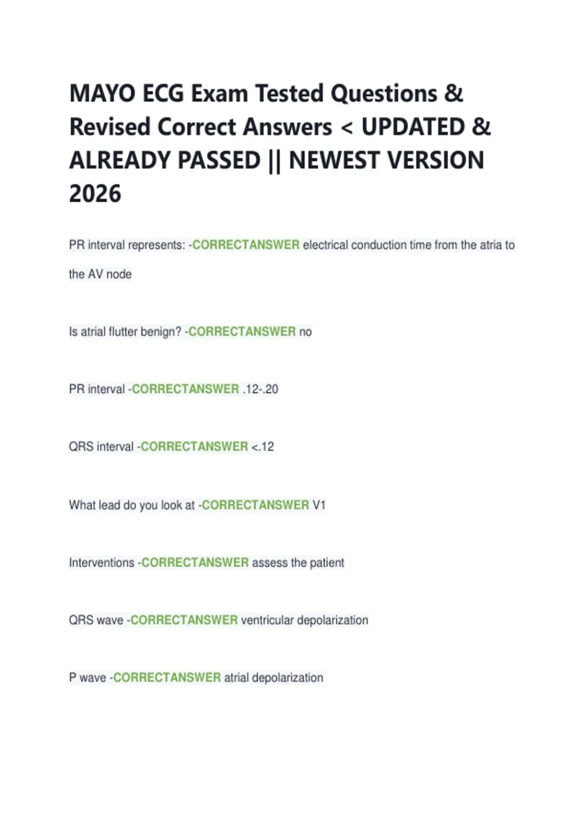 MAYO ECG Exam Tested Questions &
