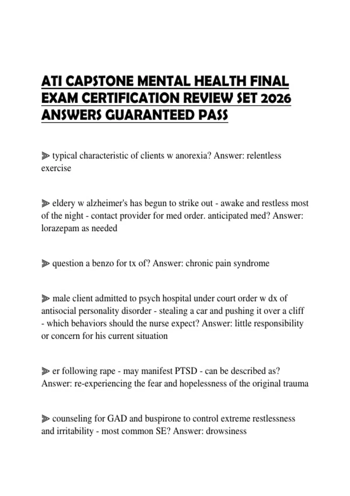 ATI CAPSTONE MENTAL HEALTH FINAL