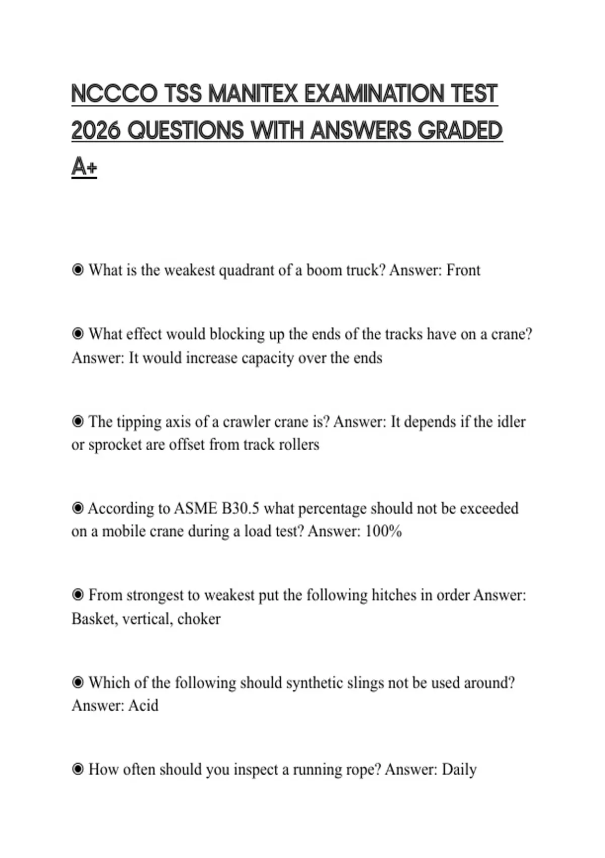 ◉ The crane must be D rated ______ To lift personnel Answer: 50%