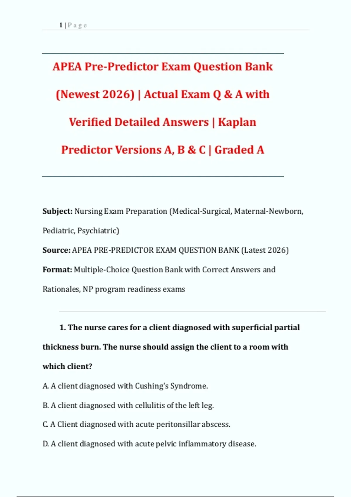 Source: APEA PRE-PREDICTOR EXAM QUESTION BANK (Latest 2026)