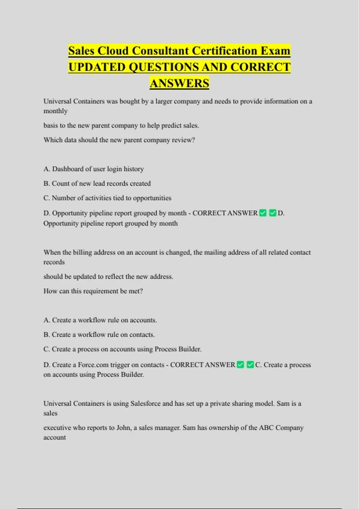 UPDATED QUESTIONS AND CORRECT
