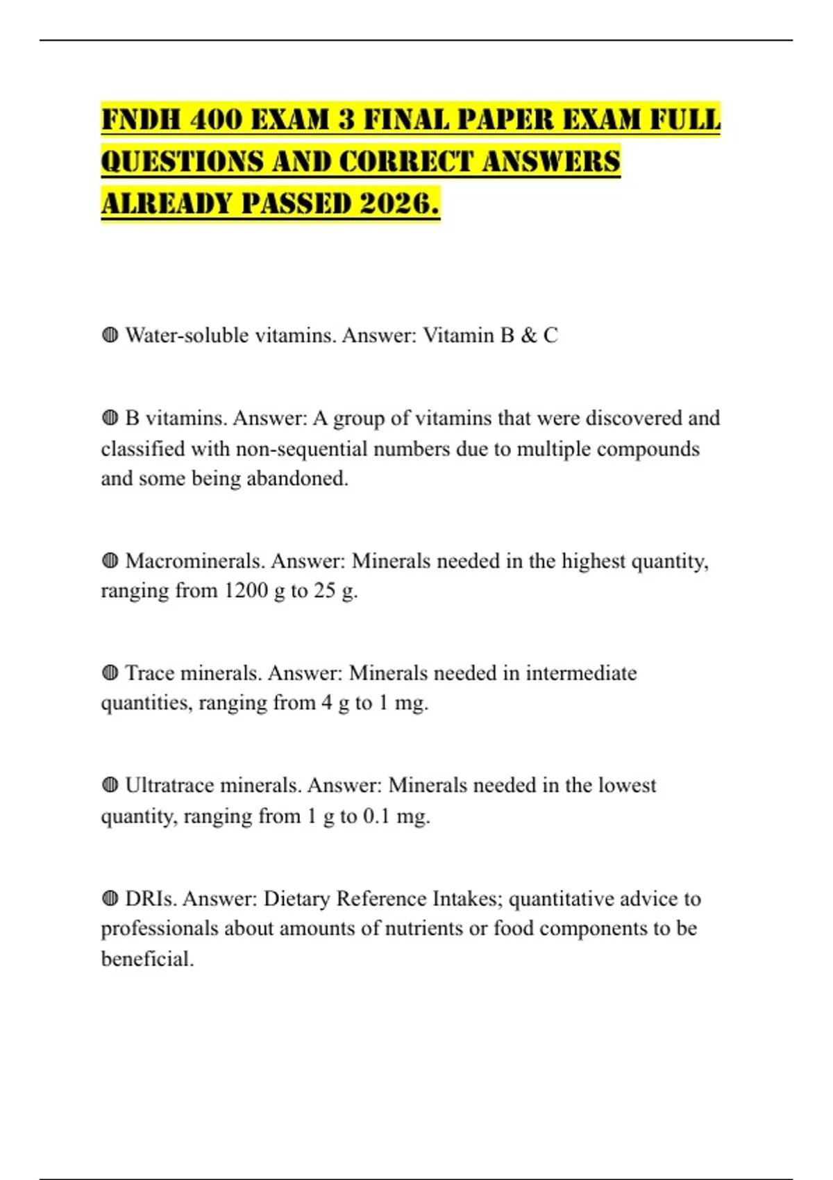 ◍ Macrominerals. Answer: Minerals needed in the highest quantity,