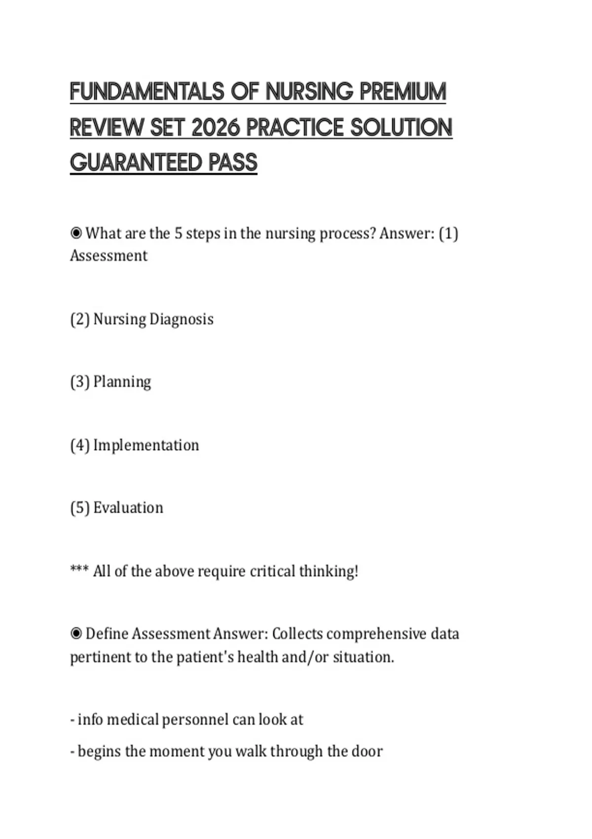 FUNDAMENTALS OF NURSING PREMIUM REVIEW SET 2026 PRACTICE SOLUTION GUARANTEED PASS