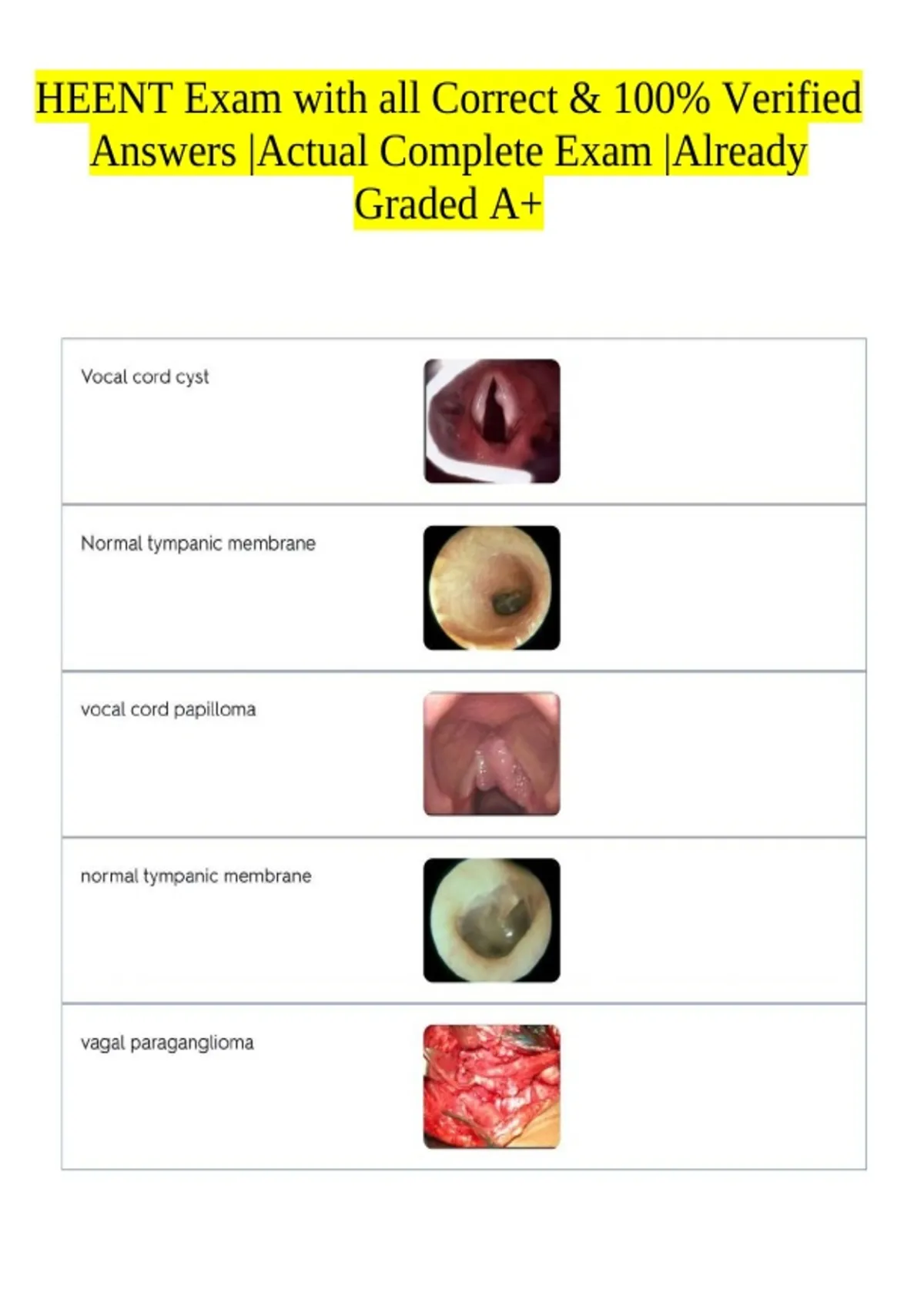 HEENT Exam with all Correct & 100% Verified Answers |Actual Complete Exam |Already Graded A+