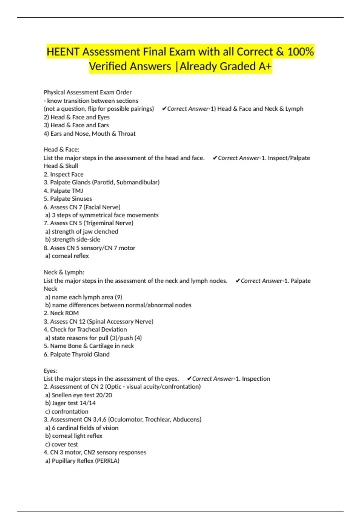 HEENT Assessment Final Exam with all Correct & 100%