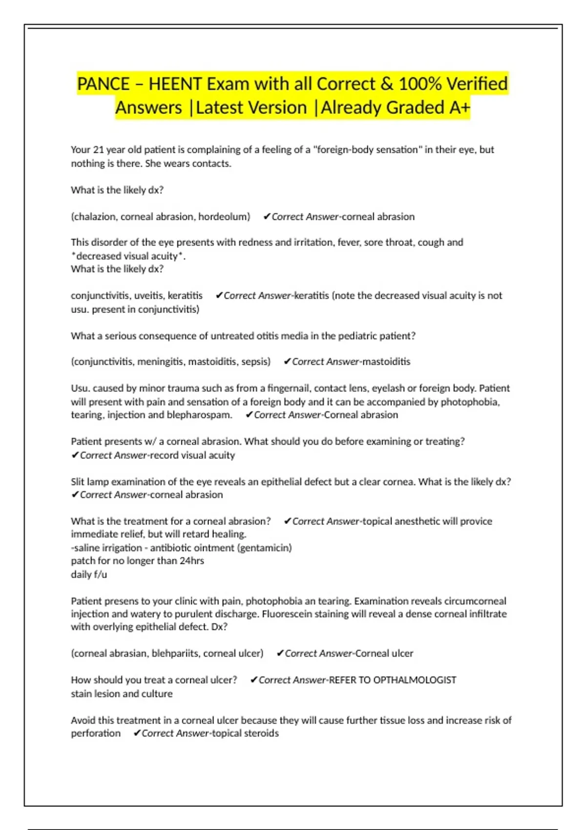 ✔Correct Answer-corneal abrasion