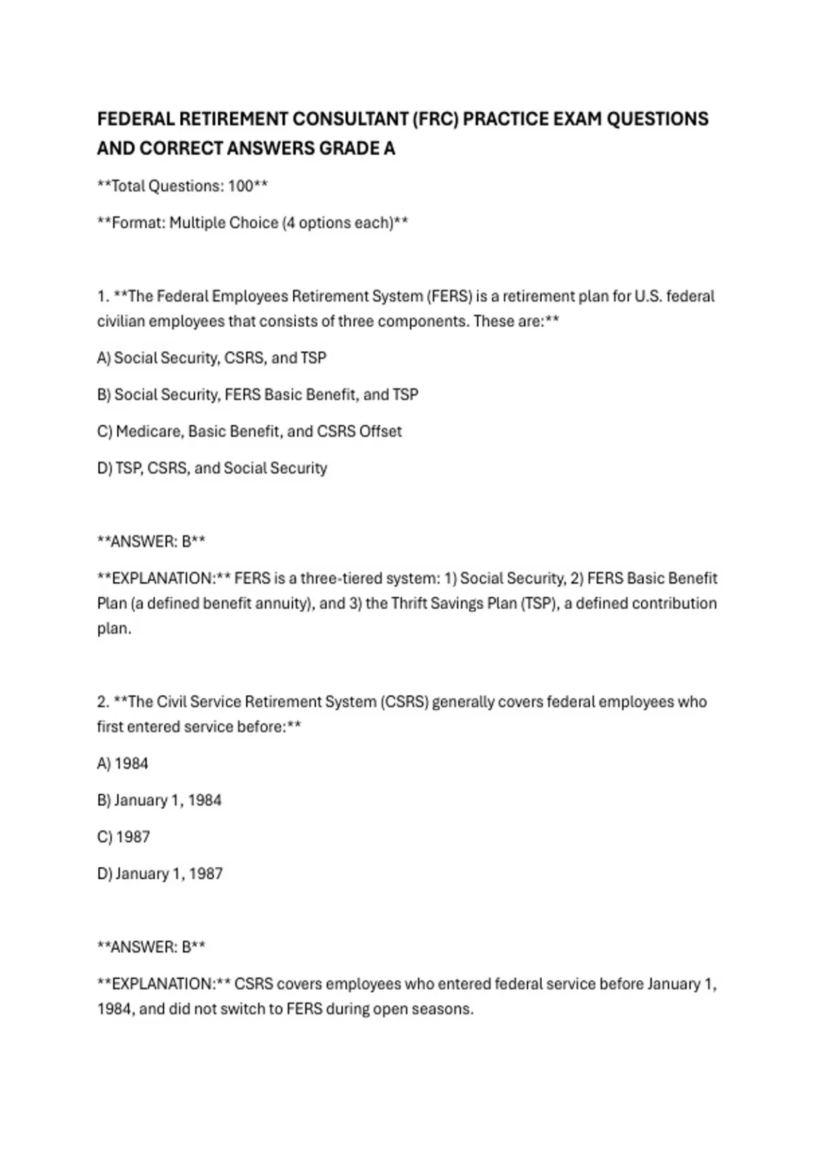 FEDERAL RETIREMENT CONSULTANT (FRC) PRACTICE EXAM QUESTIONS