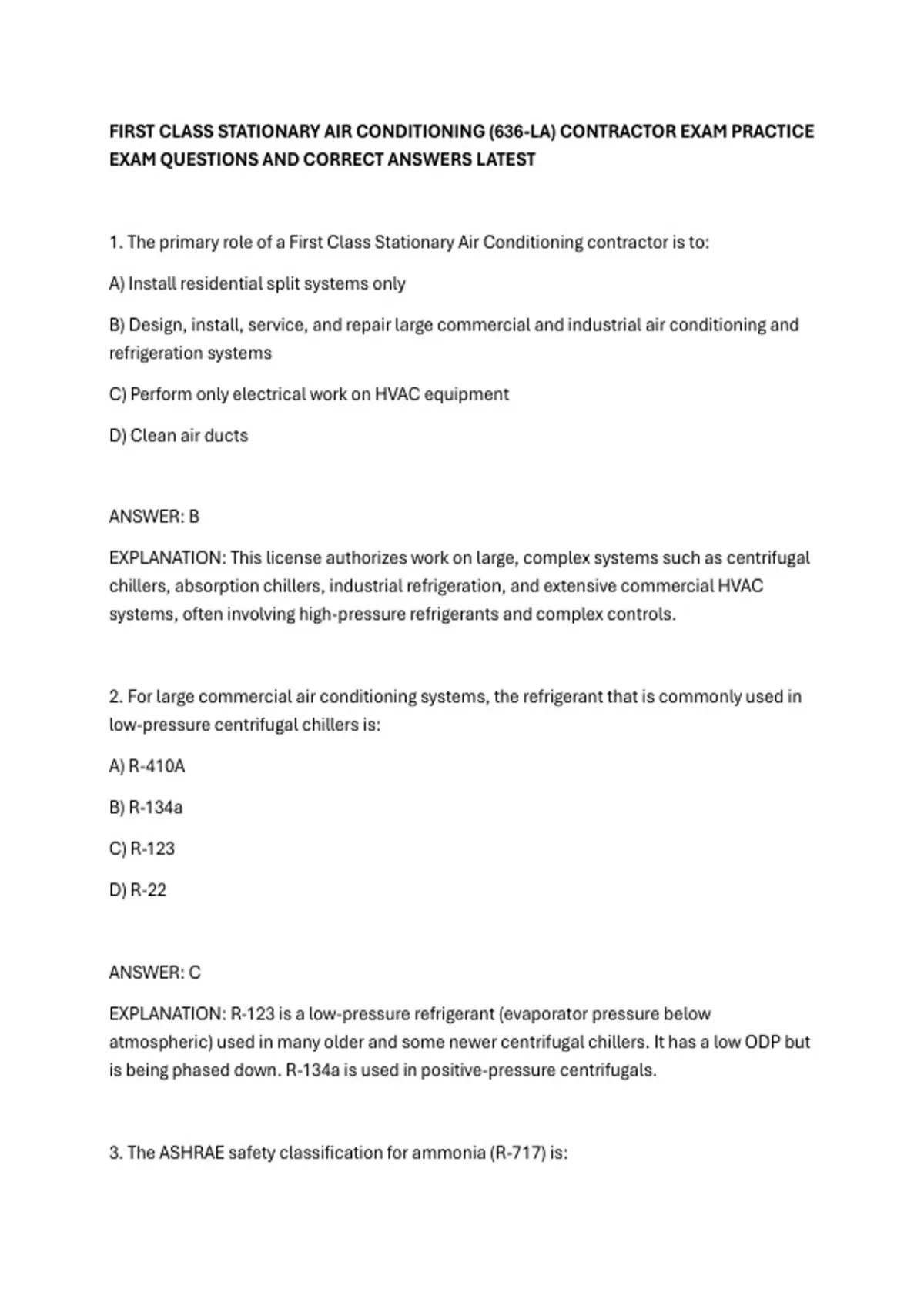 FIRST CLASS STATIONARY AIR CONDITIONING (636-LA) CONTRACTOR EXAM PRACTICE