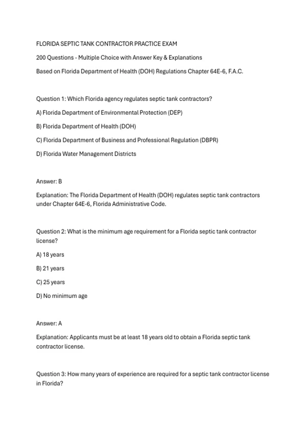 Question 2: What is the minimum age requirement for a Florida septic tank contractor