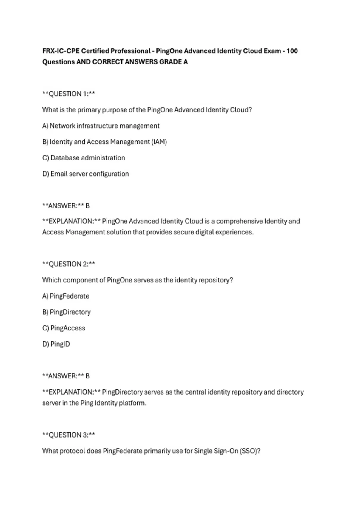 FRX-IC-CPE Certified Professional - PingOne Advanced Identity Cloud Exam - 100 Questions AND CORRECT ANSWERS GRADE A
