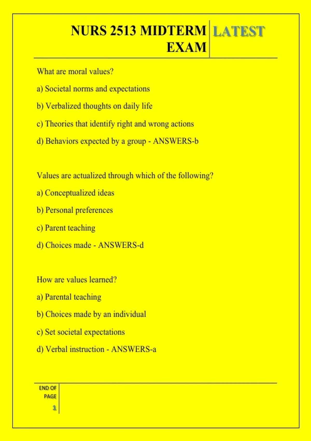 , NURS 2513 MIDTERM LATEST