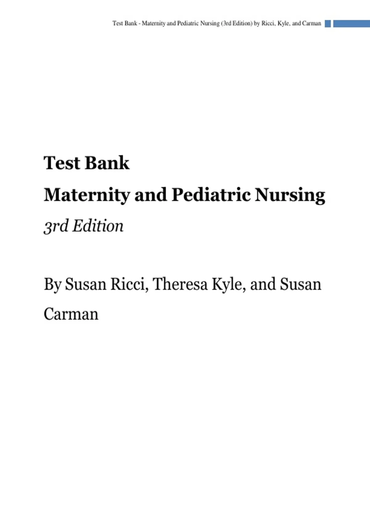 , Test Bank - Maternity and Pediatric Nursing (3rd Edition) by Ricci, Kyle, and Carman