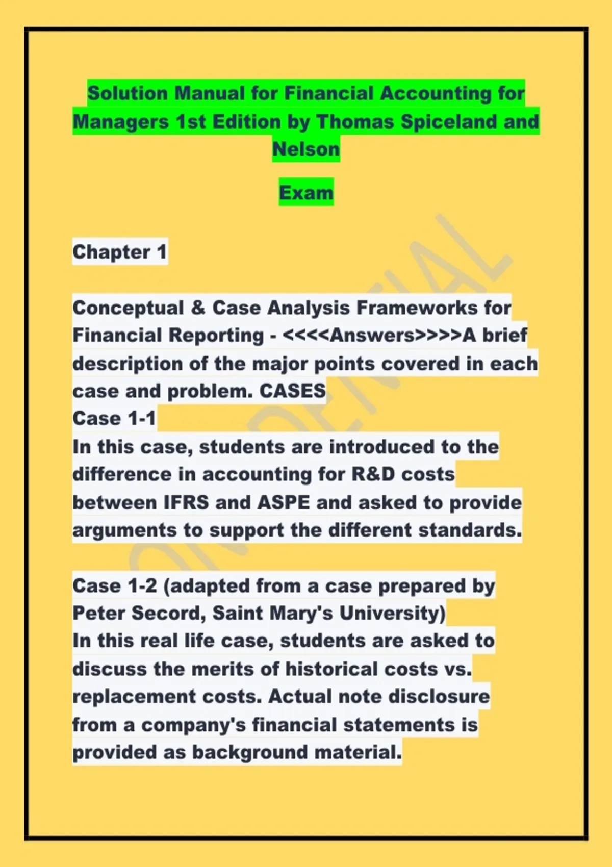 Solution Manual for Financial Accounting for Managers 1st Edition by Thomas Spiceland and Nelson Exam