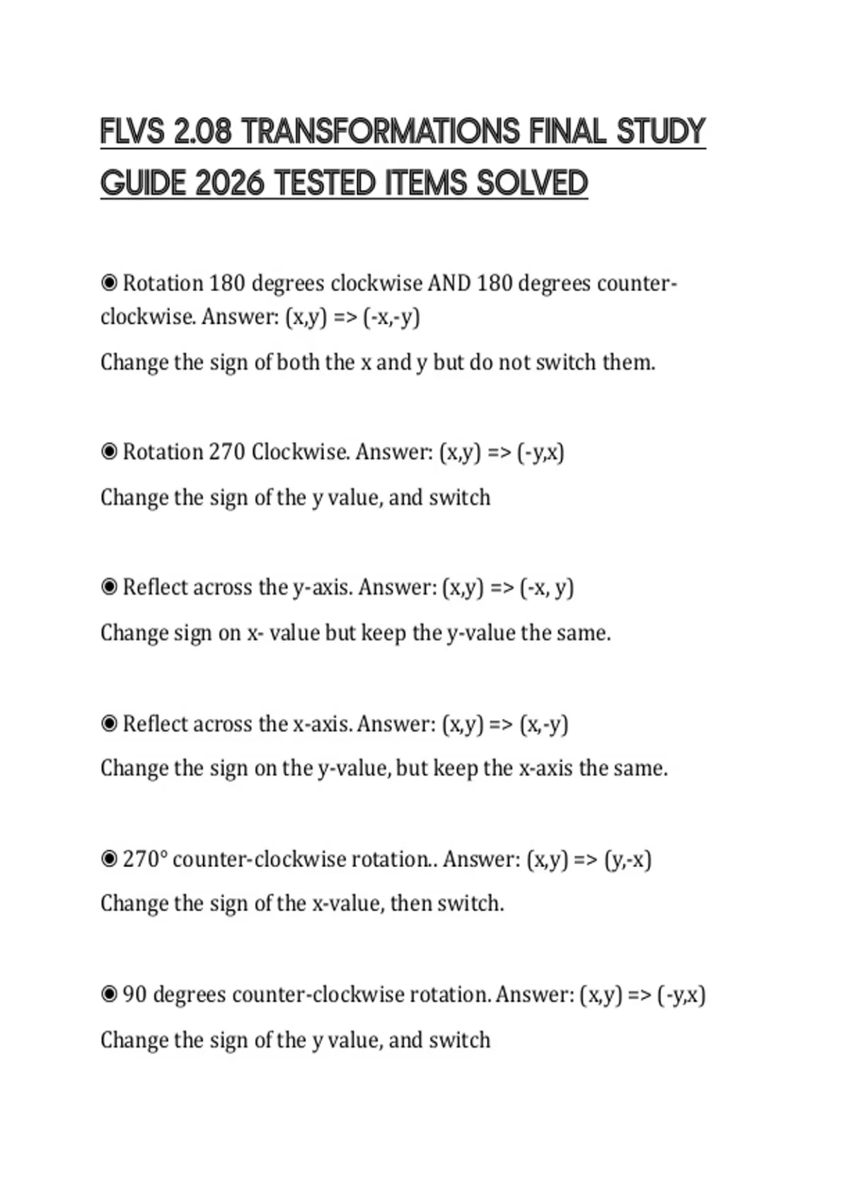 FLVS 2.08 TRANSFORMATIONS FINAL STUDY GUIDE 2026 TESTED ITEMS SOLVED