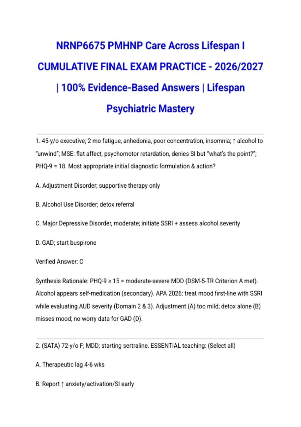 1. 45-y/o executive; 2 mo fatigue, anhedonia, poor concentration, insomnia; ↑ alcohol to