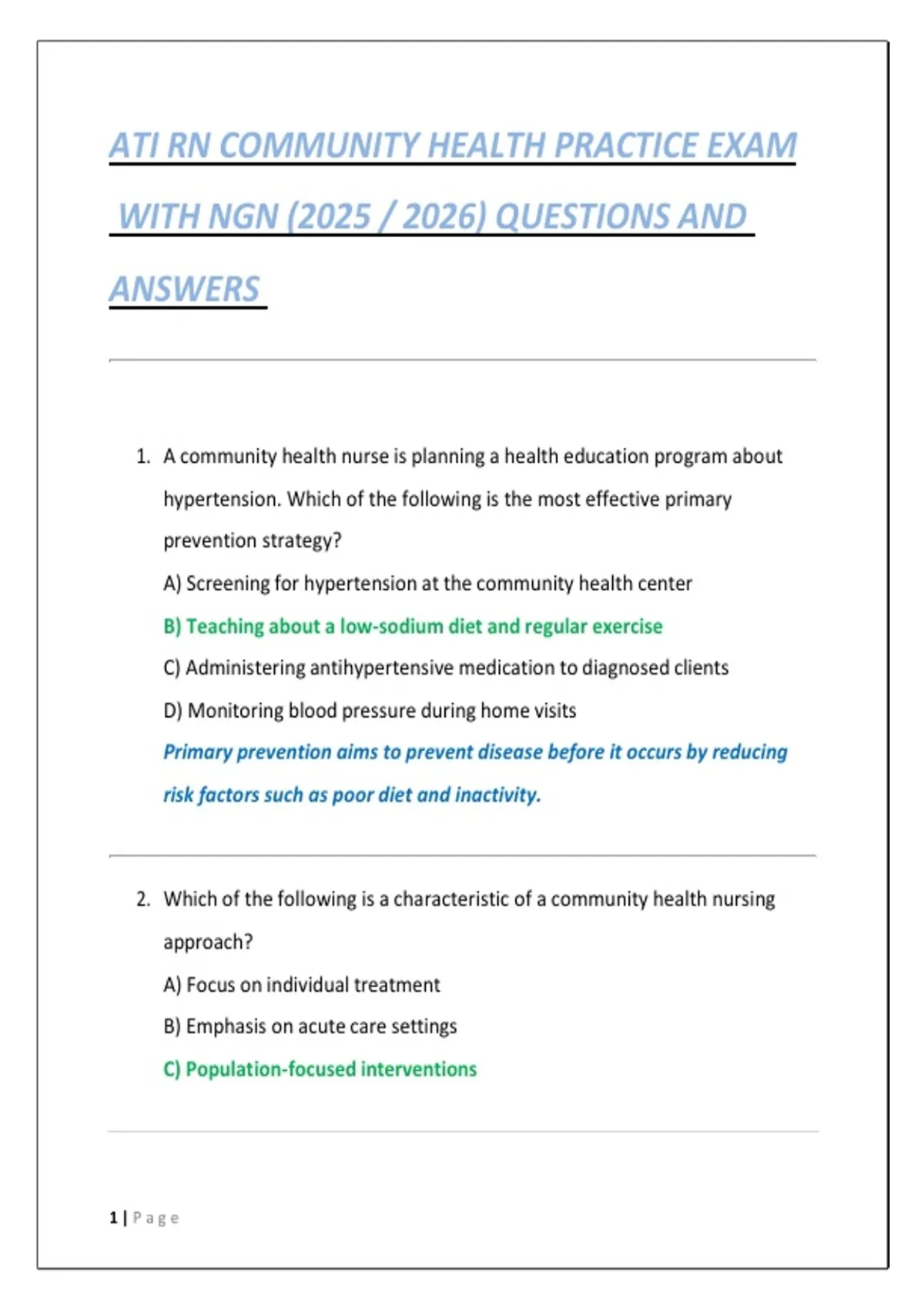 ATI RN COMMUNITY HEALTH PRACTICE EXAM