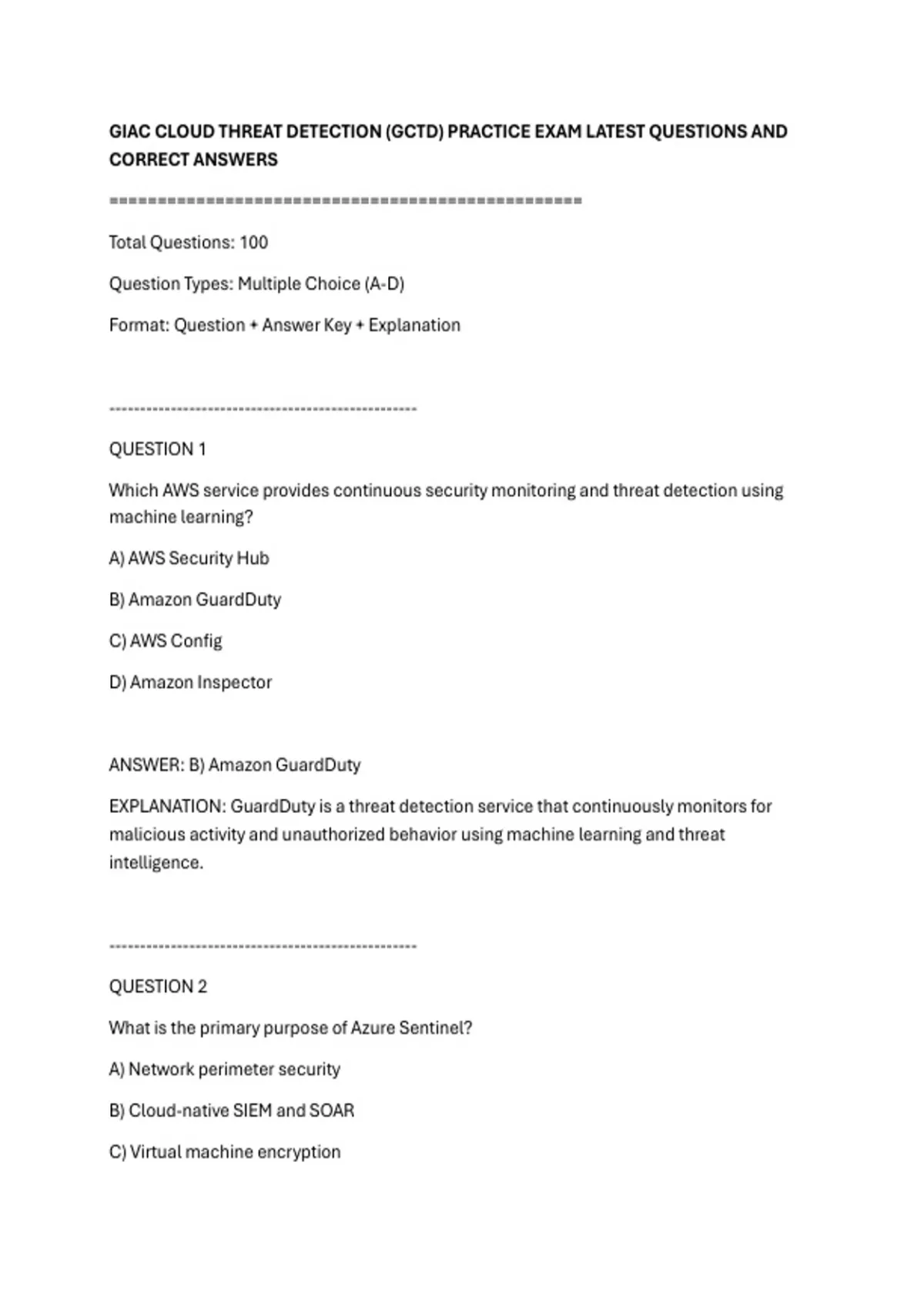 GIAC CLOUD THREAT DETECTION (GCTD) PRACTICE EXAM LATEST QUESTIONS AND
