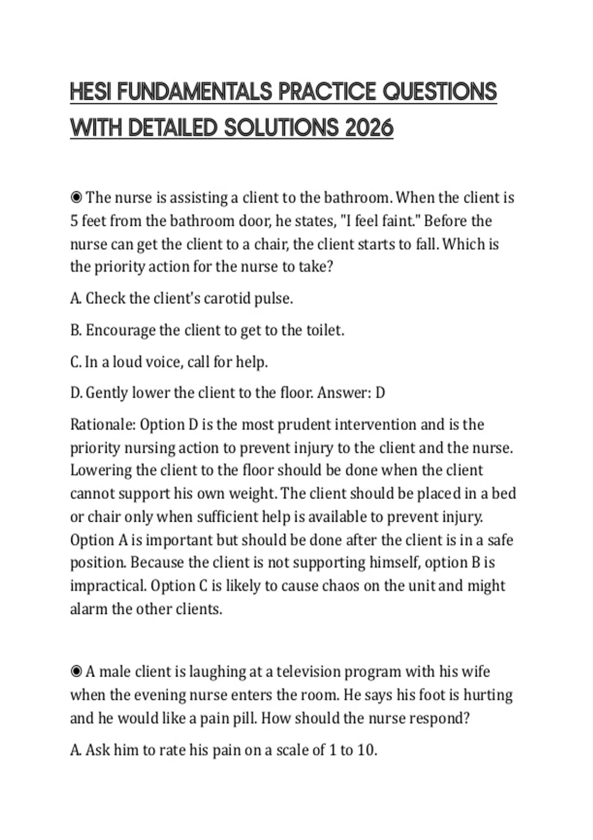 HESI FUNDAMENTALS PRACTICE QUESTIONS WITH DETAILED SOLUTIONS 2026