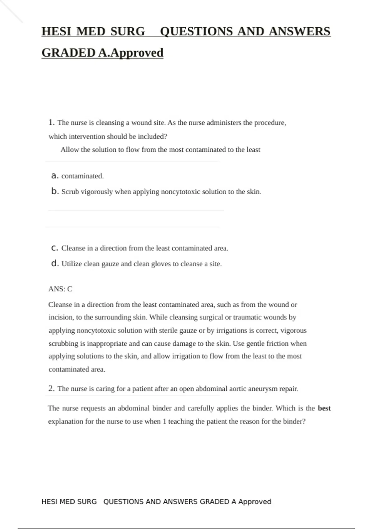 , HESI MED SURG QUESTIONS AND ANSWERS