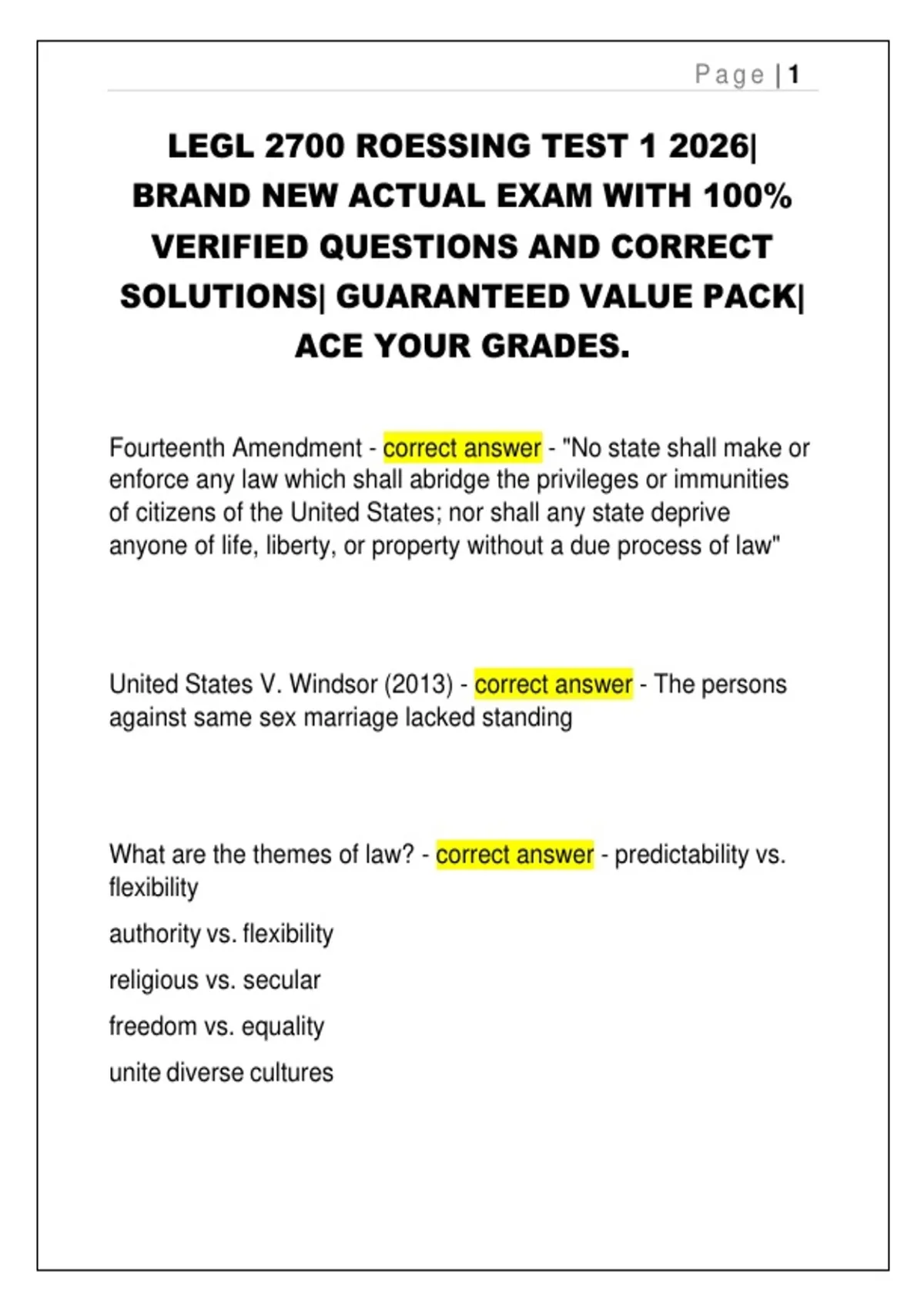 LEGL 2700 (Roessing) Test 1 Questions & Answers | Latest Update 2026 | Verified Solutions | Exam Prep Study Pack