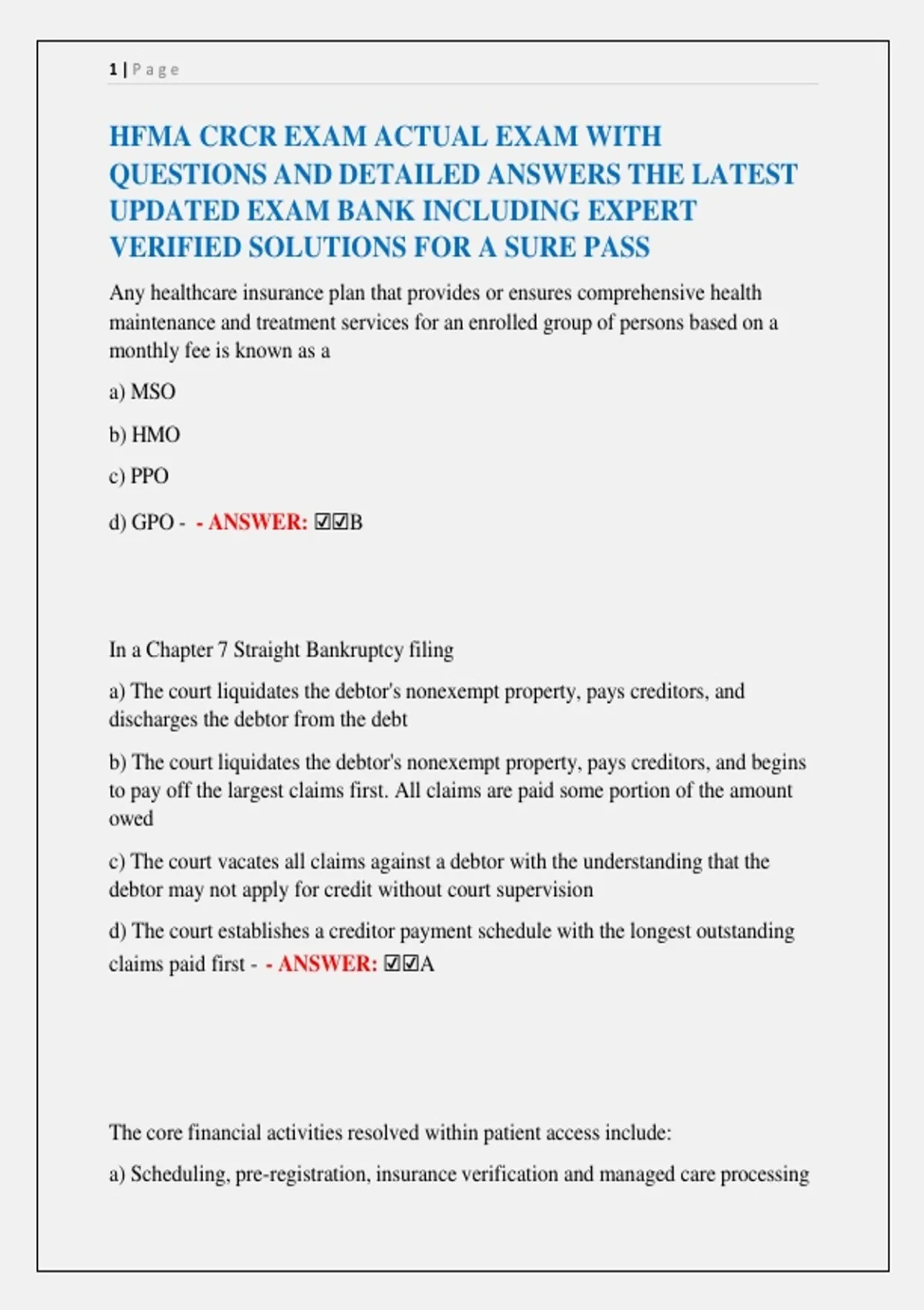 HFMA CRCR EXAM ACTUAL EXAM WITH