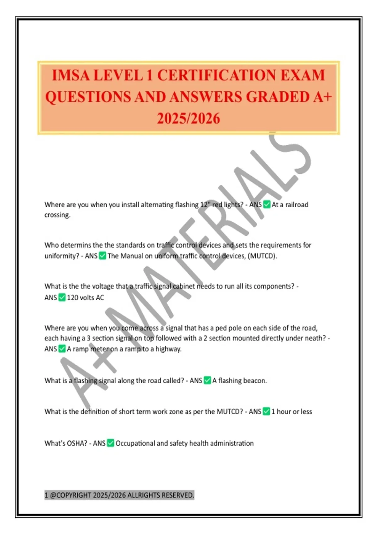 IMSA LEVEL 1 CERTIFICATION EXAM