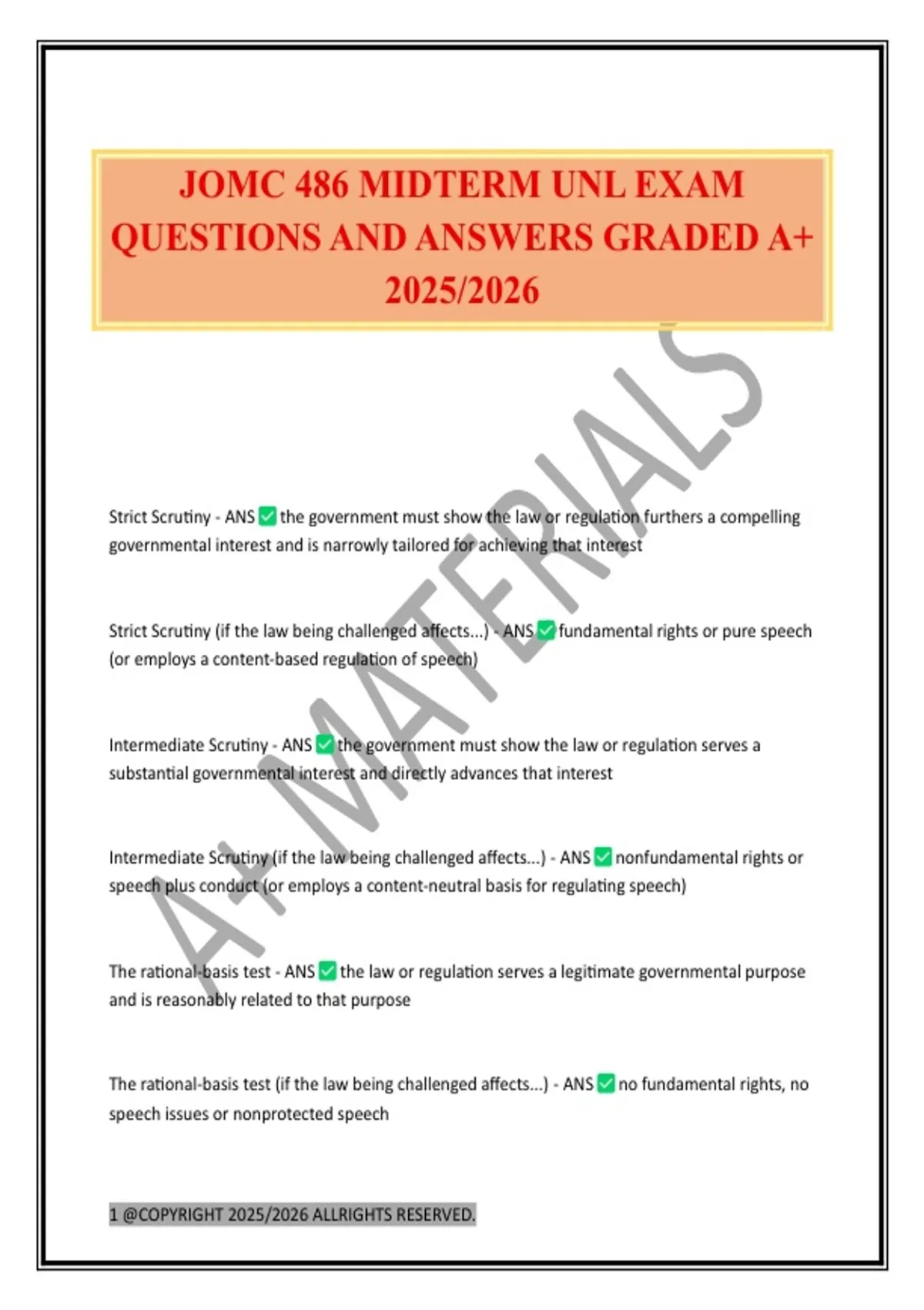 JOMC 486 MIDTERM UNL EXAM QUESTIONS AND ANSWERS GRADED A+ 2025/2026