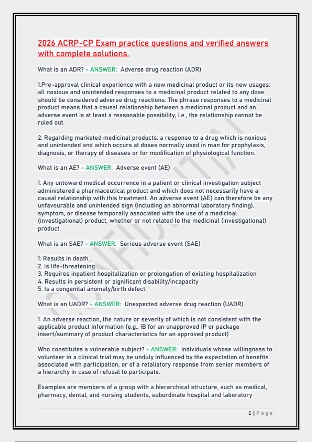 What is an ADR? - ANSWER: Adverse drug reaction (ADR)