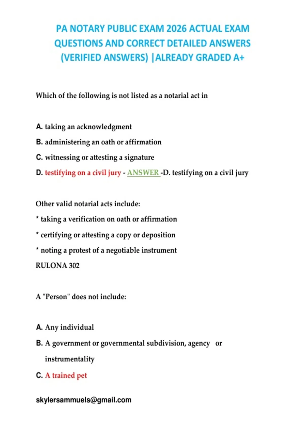 , PA NOTARY PUBLIC EXAM 2026 ACTUAL EXAM