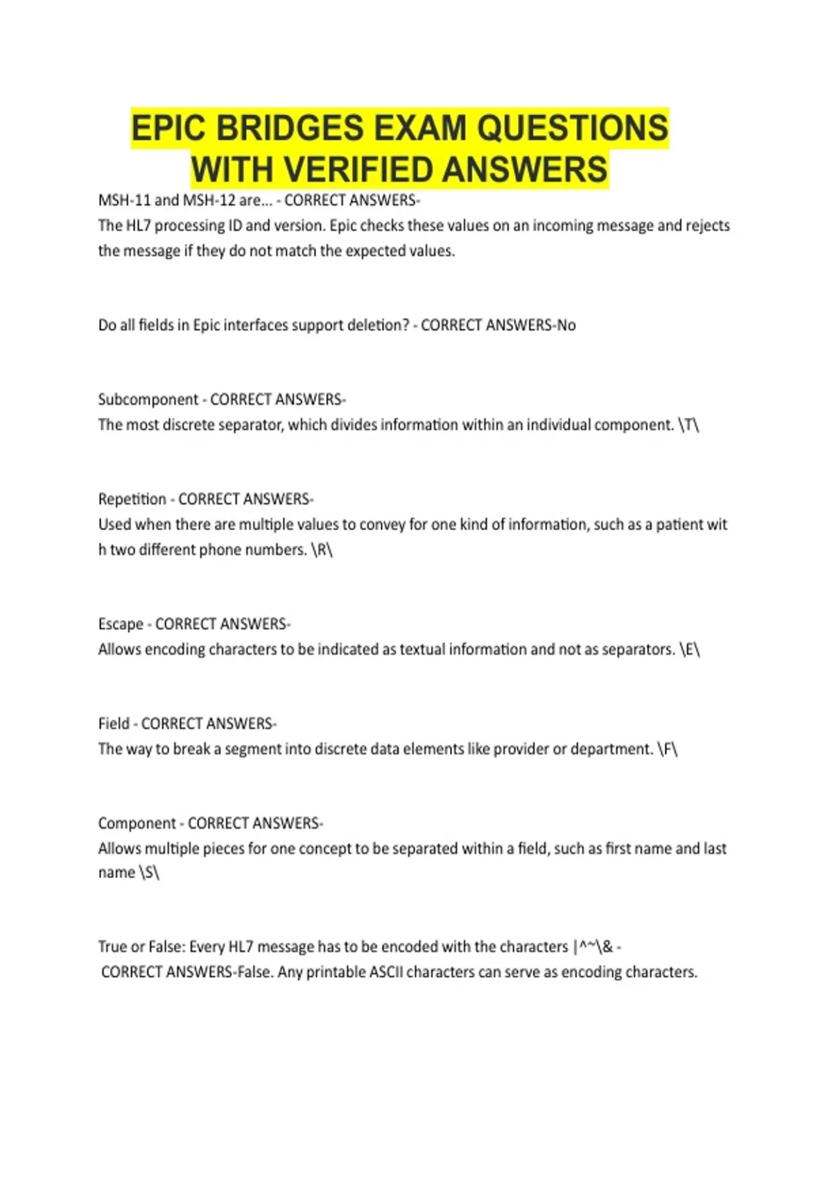 TrueTorTFalse:TEveryTHL7TmessageThasTtoTbeTencodedTwithTtheTcharactersT|^~\&T-