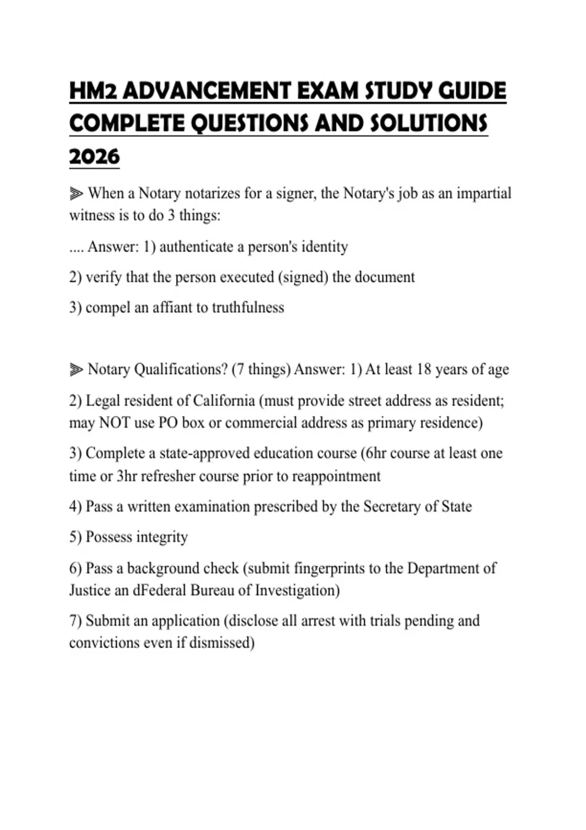 HM2 ADVANCEMENT EXAM STUDY GUIDE COMPLETE QUESTIONS AND SOLUTIONS 2026