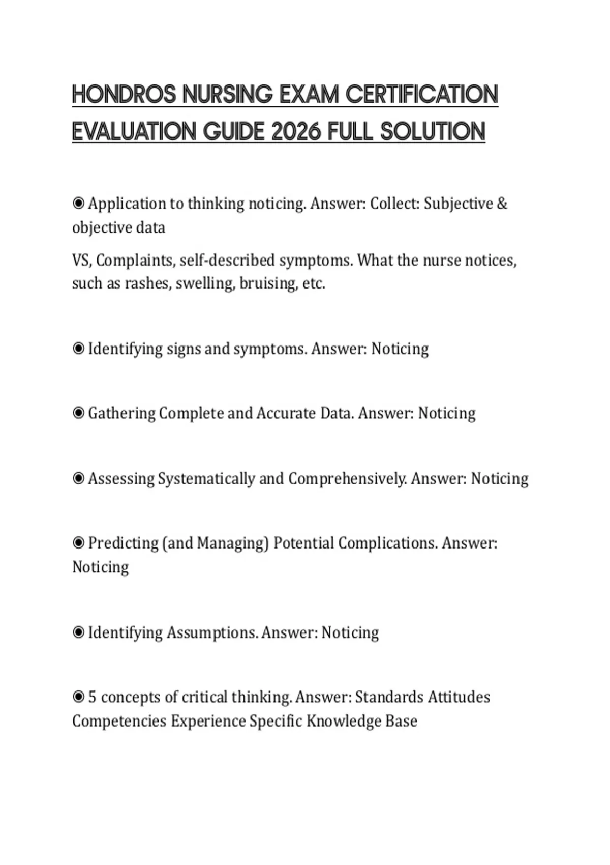 HONDROS NURSING EXAM CERTIFICATION EVALUATION GUIDE 2026 FULL SOLUTION