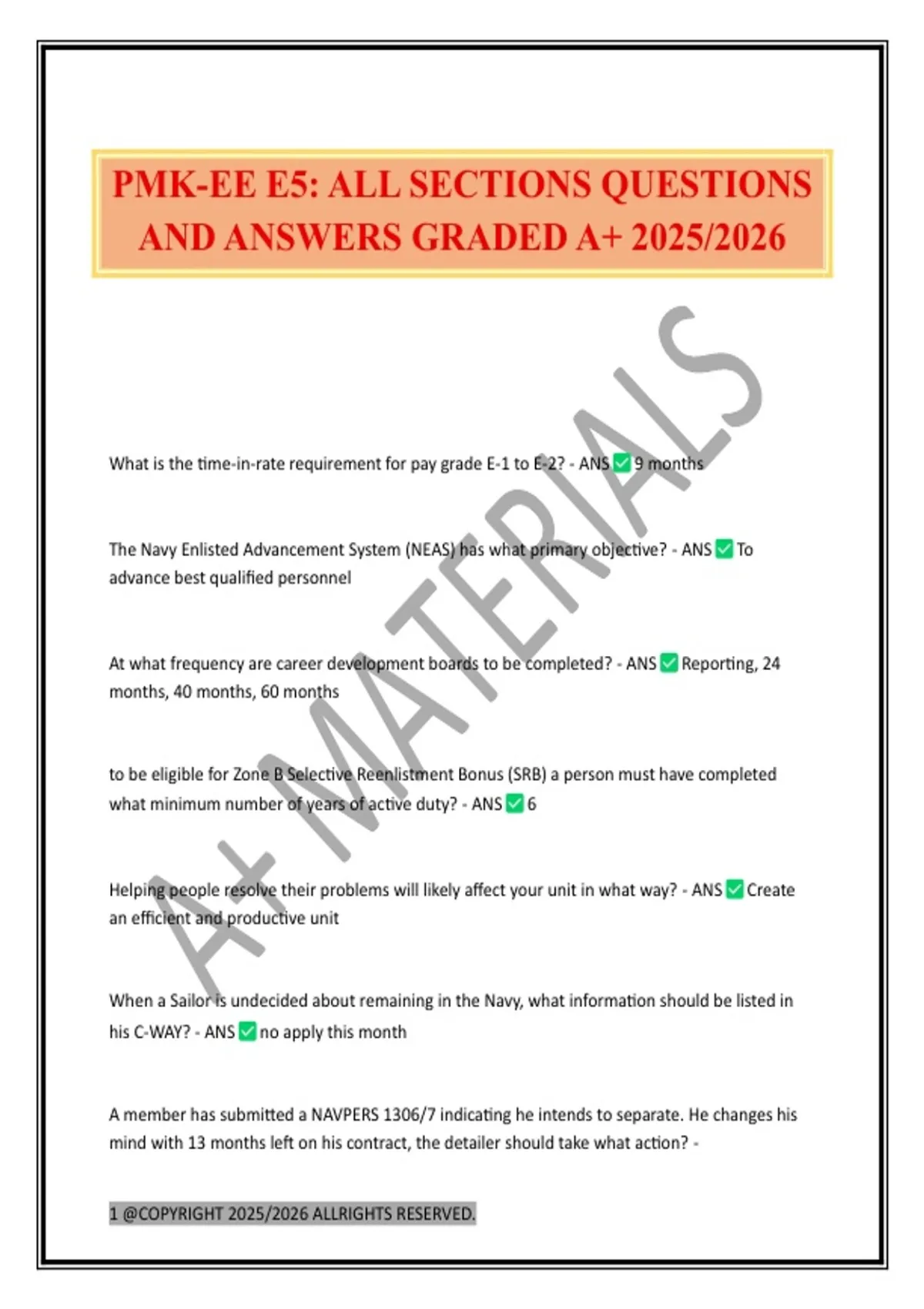 PMK-EE E5: ALL SECTIONS QUESTIONS AND ANSWERS GRADED A+ 2025/2026