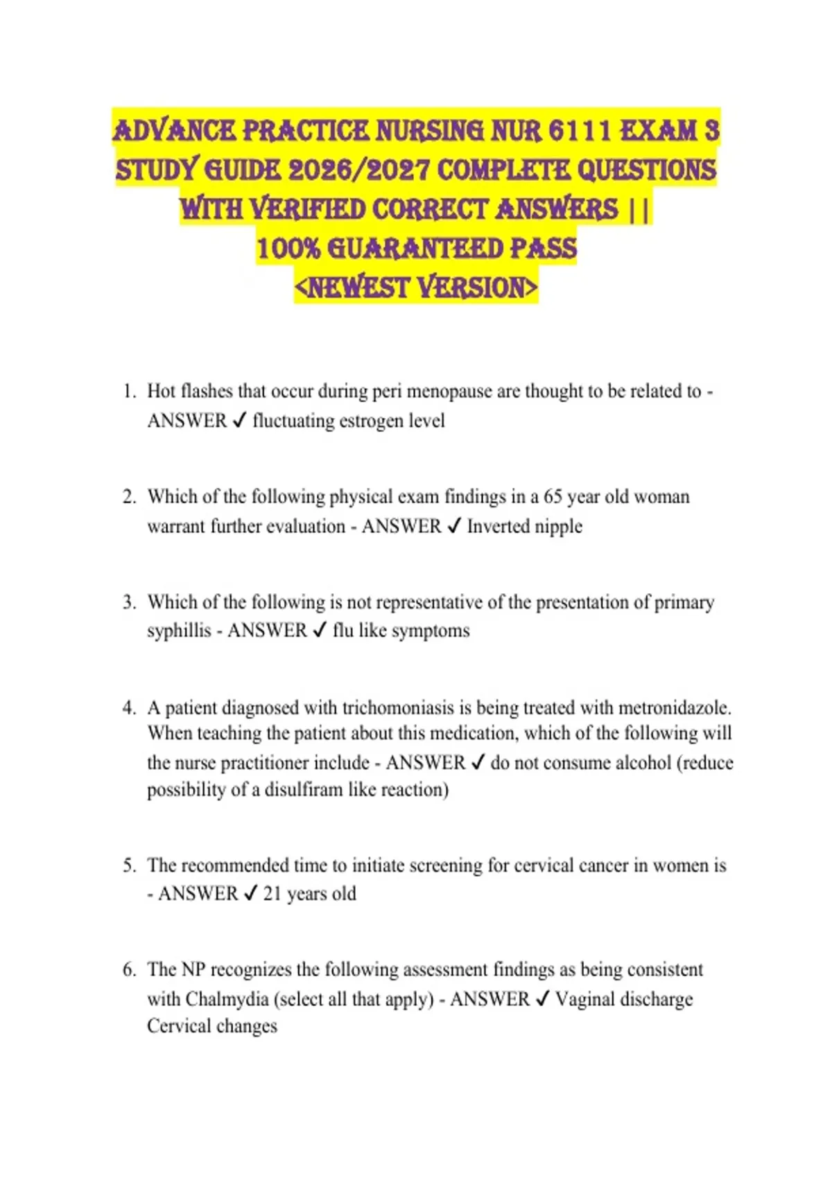 STUDY GUIDE 2026/2027 COMPLETE QUESTIONS