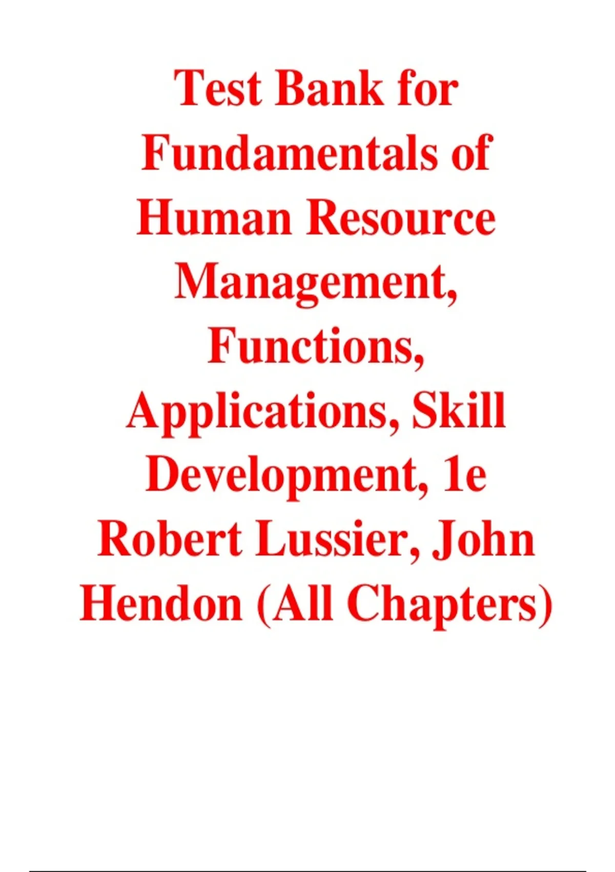 Test Bank for Fundamentals of Human Resource Management, Functions, Applications, Skill Development, 1st Edition By Robert Lussier, John Hendon All Chapters 1-14
