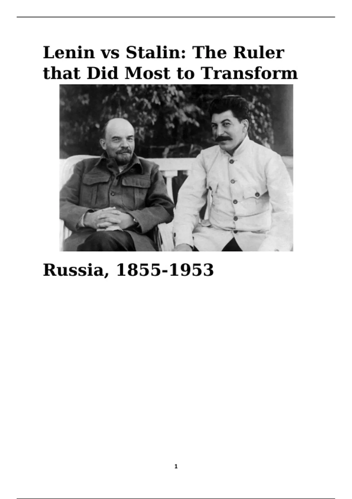 A comparative essay on Lenin and Stalin’s leadership styles, policies, and ideologies. This essay helps students evaluate who had the greater impact on shaping Soviet Russia, using historical evidence and balanced argumentation ideal for A‑Level exams.