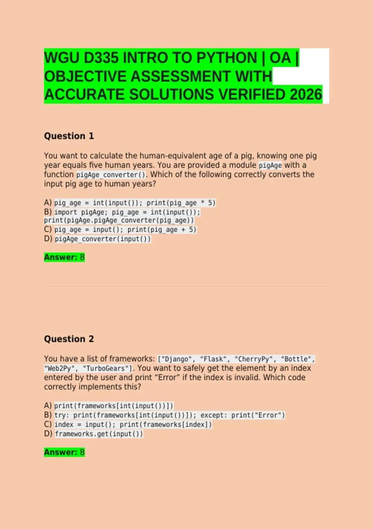 WGU D335 INTRO TO PYTHON | OA | OBJECTIVE ASSESSMENT WITH ACCURATE SOLUTIONS VERIFIED 2026
