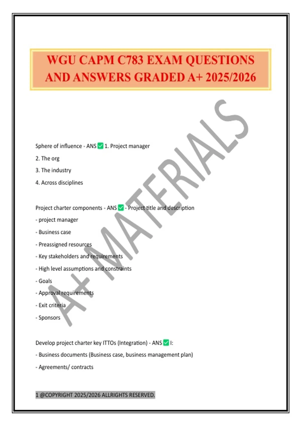 WGU CAPM C783 EXAM QUESTIONS AND ANSWERS GRADED A+ 2025/2026